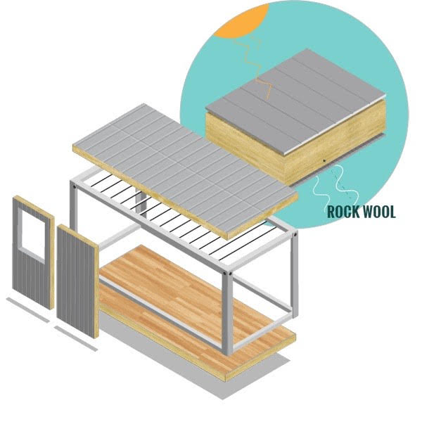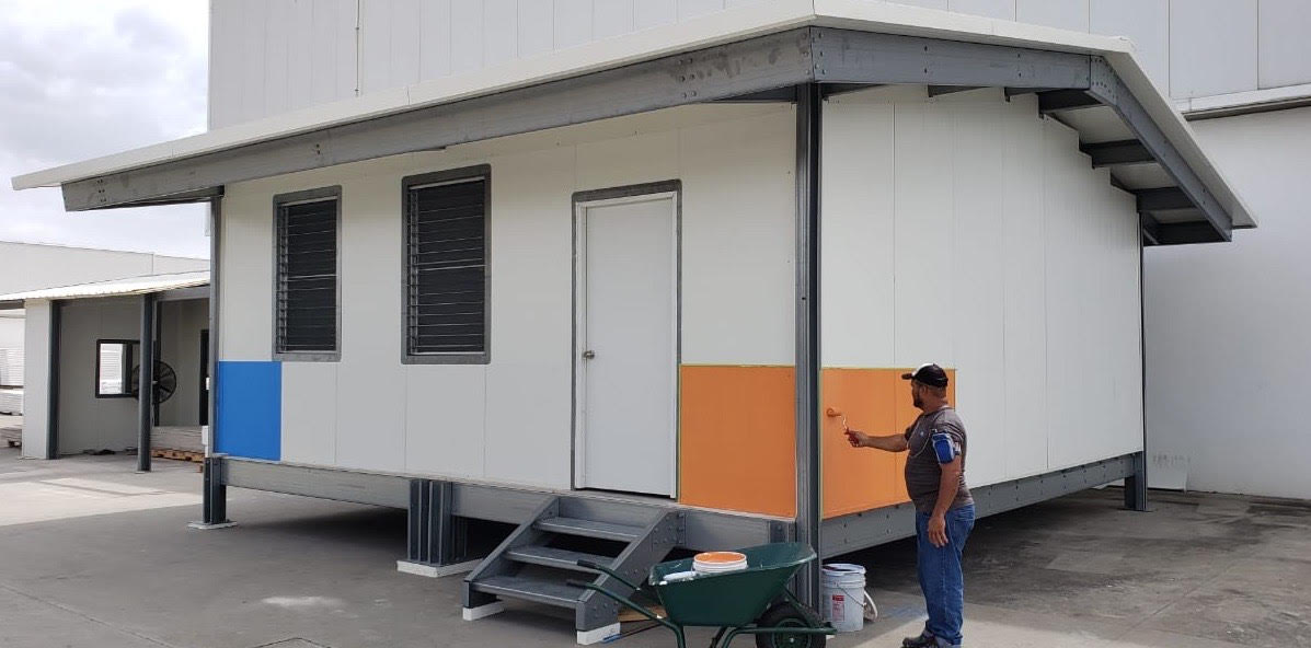 El kit completo Incluye estructuras metálicas, paredes, techo, puertas, ventanas, pisos y accesorios listo para ensamble en cualquier lugar sobre terreno rígido o arenoso.